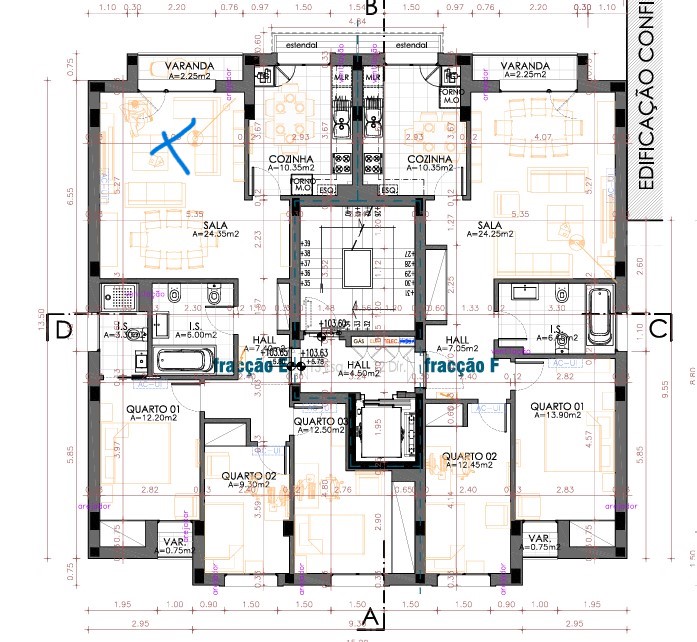 Apartamento T3, 2º andar Esquerdo ( Fração E )