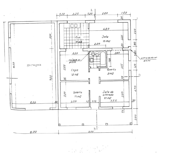 Através da cozinha encontramos a garagem, com janelas para o exterior, providenciando muita iluminação natural, tem pé direito com cerca de 6 metros, espaço para lavandaria, que pode ser transformado em WC e encontra-se em bom estado geral.