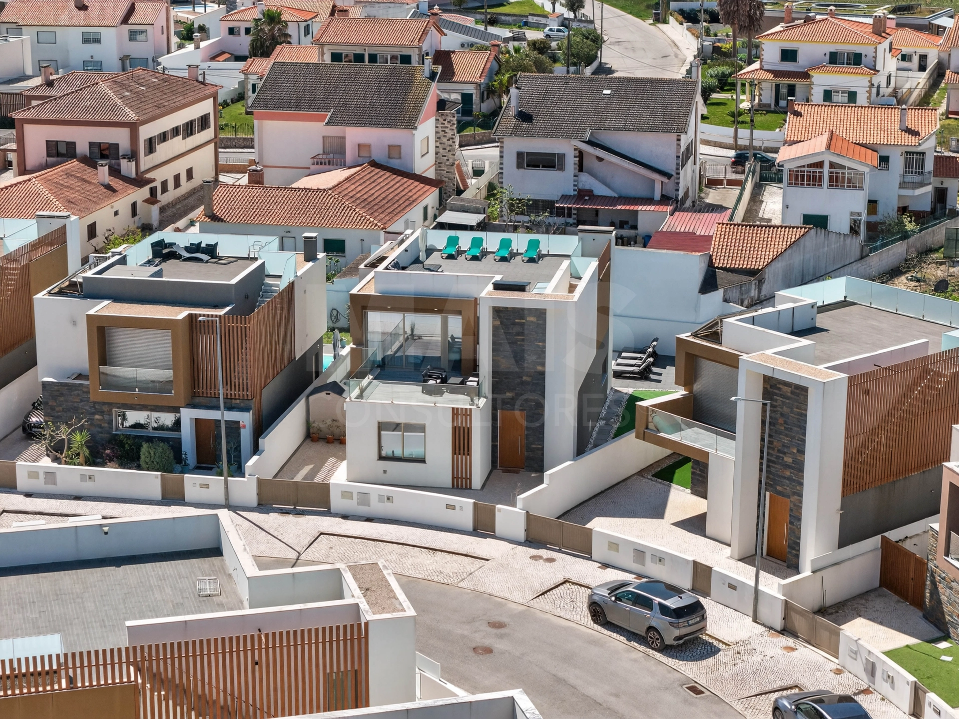 No exterior, o jardim com piscina cria o cenário ideal para dias longos de verão, enquanto o rooftop se torna o ponto alto da casa — um espaço reservado para desacelerar, contemplar o pôr do sol e desfrutar da envolvência única de Salir do Porto.